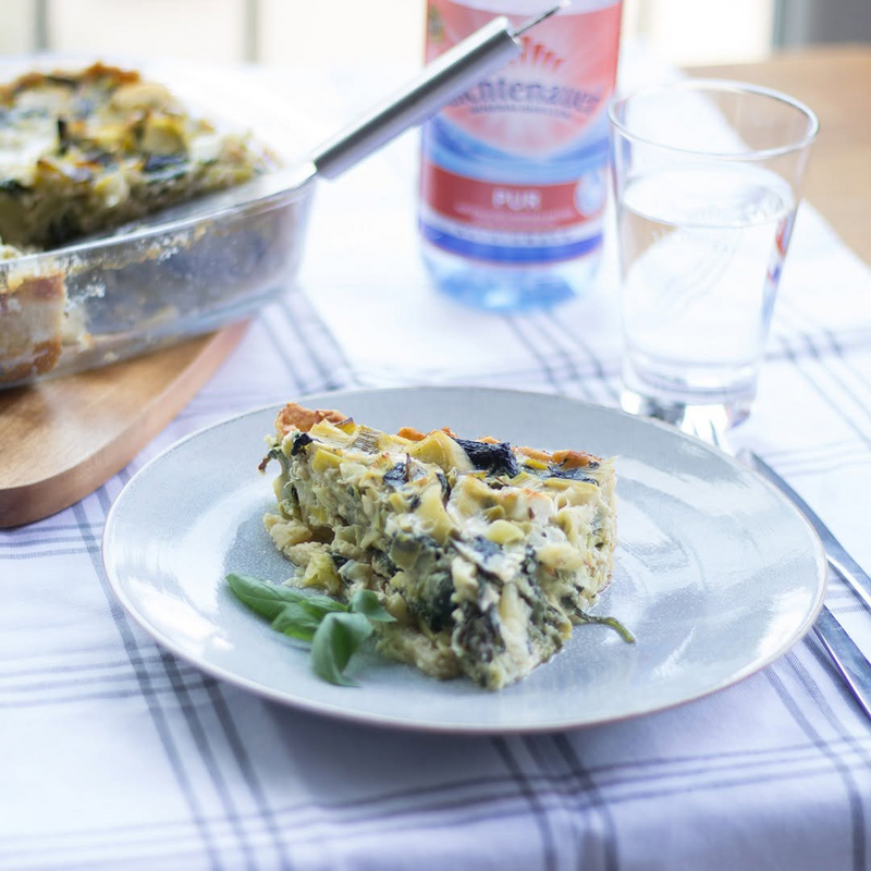 Eier, Milch und Thymian verquirlen. Mit Salz, Pfeffer und Muskat abschmecken. Das Gemüse aus der Pfanne und Ziegenkäse in die Eiermischung geben und gut verrühren. Die Masse in den vorgebackenen Quiche Teig geben und im heißen Ofen ca. 35 Minuten backen. Kleiner Tipp: Wenn die Oberfläche zu dunkel wird, mit Alufolie abdecken.