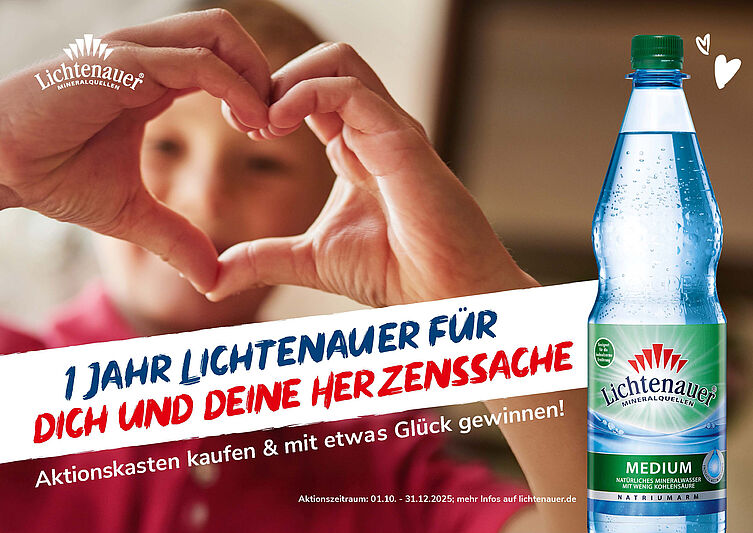 Während der Aktion sind mehr als 6,5 Millionen 1,0 Liter PET-Mehrweg-Flaschen mit Aktionsetiketten im Handel. Am POS generieren aufmerksamkeitsstarke Zweitplatzierungen zusätzliche Impulse. Die Lichtenauer Herzenssache wird zudem reichweitenstark über klassische OOH-Kanäle, Funkspots und Online-Medien beworben.