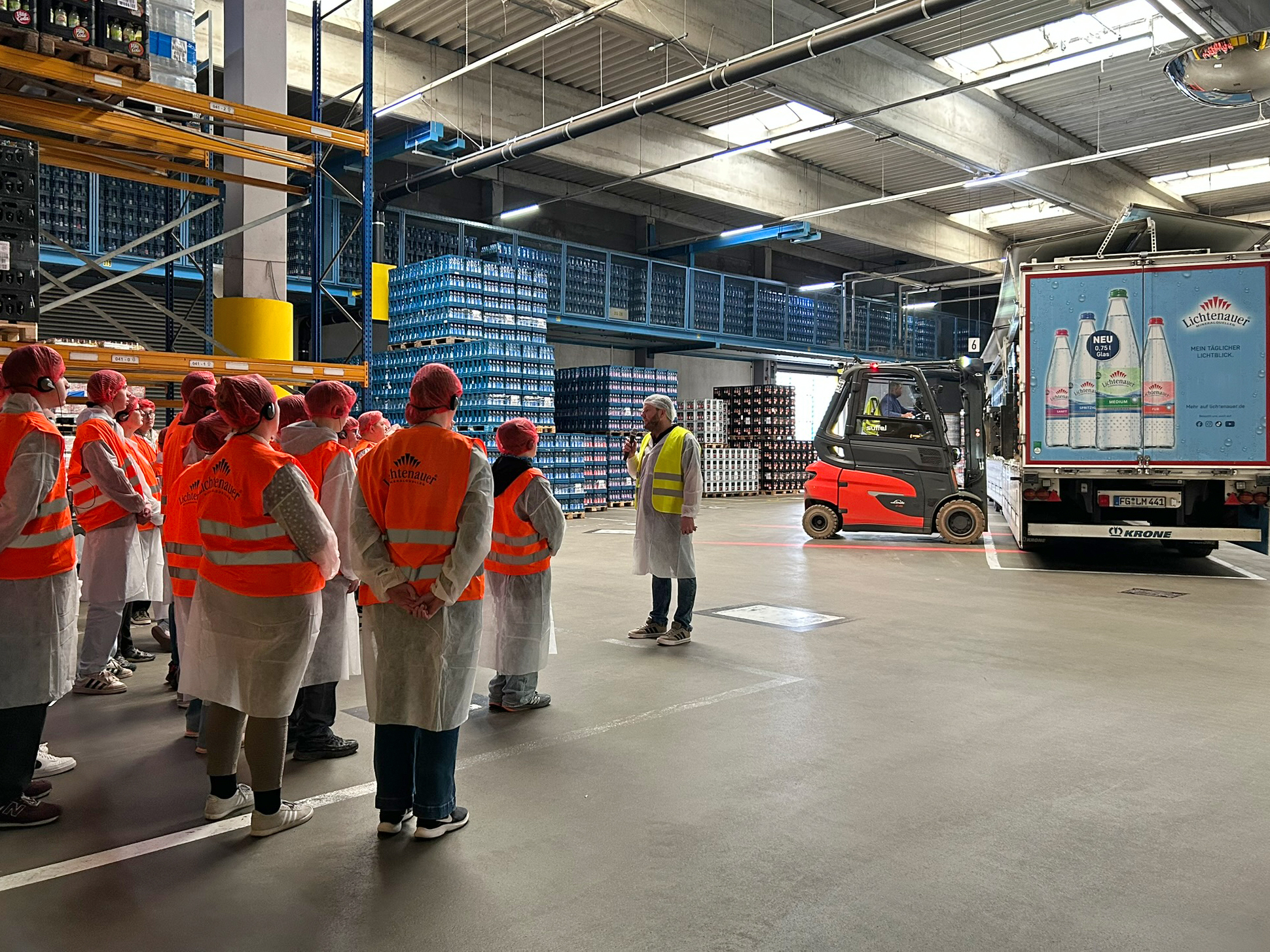 Auf die Jugendlichen wartete ein abwechslungsreiches Programm mit Unternehmensführung und umfassenden Informationen zu den sieben Ausbildungsberufen bei Lichtenauer. Das sächsische Brunnenunternehmen bildet zur Fachkraft für Lebensmitteltechnik, Fachkraft für Lagerlogistik, Fachlagerist, Mechatroniker, Industriekaufleute, Berufskraftfahrer und Maschinen- und Anlagenführer aus. Die beiden Ausbildungsleiter Yvonne Jäpel und Falko Ludwig standen für persönliche Gespräche zur Verfügung und gaben Einblicke in die Tagesabläufe der Auszubildenden. Wer sich nach diesem Tag für eine Ausbildung bei Lichtenauer interessiert, kann bei einem Praktikum erste Erfahrungen sammeln. Yvonne Jäpel erklärt: „Für viele Schülerinnen und Schüler ist es heutzutage nicht leicht, sich für einen Beruf zu entscheiden. Die Tätigkeiten hier im Unternehmen unterscheiden sich stark von dem vertrauten Schulalltag. Wir bieten deshalb gern Schnupperpraktika an. So können wir uns gegenseitig besser kennenlernen.“